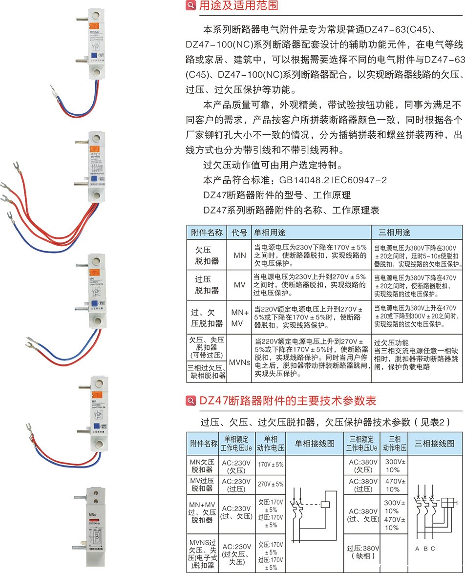 MV,MN,MV+MN,MNs过压,欠压,过欠压,失压脱扣器
