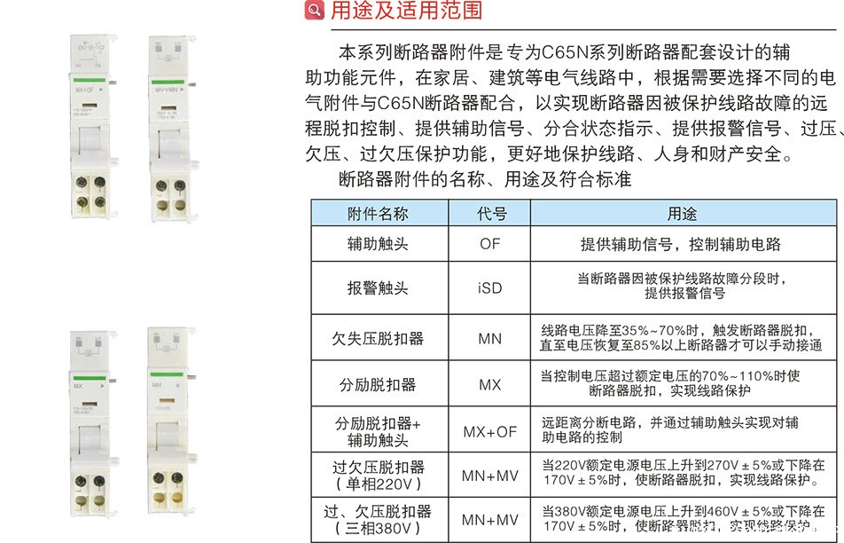 配套C65N断路器的各种附件